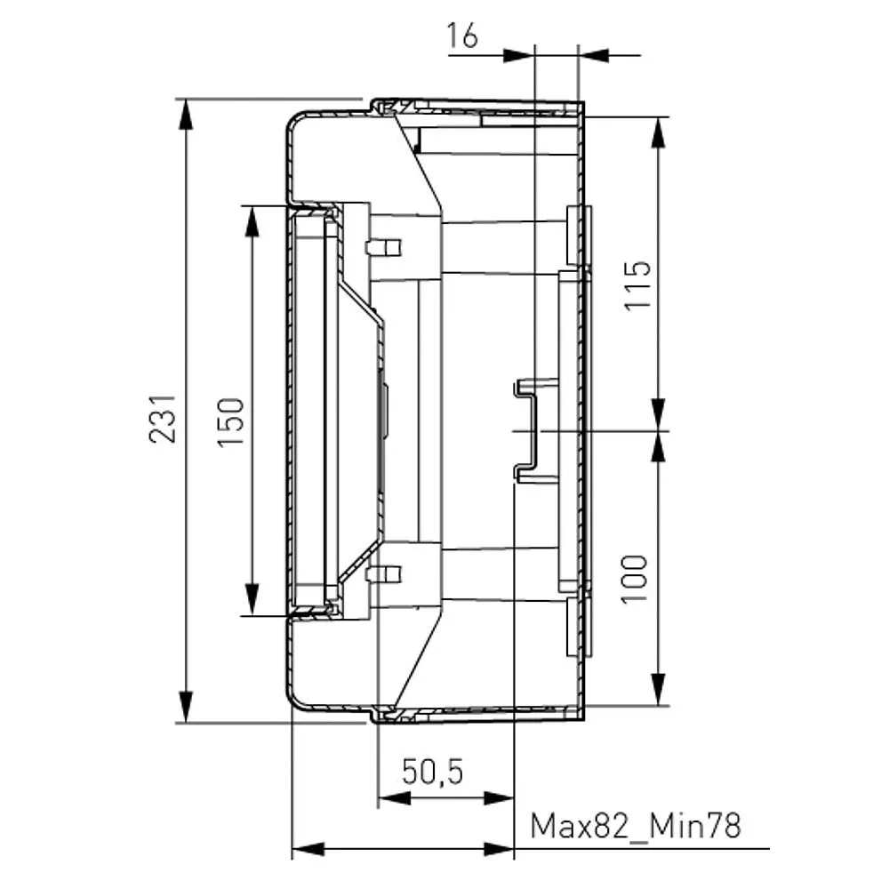 schutzisoliert, aus selbstlöschenden ABS-Kunststoff, Schlagfestigkeit IK08, vorgestanzte Einführungen M20-M40 oben und unten, Verdrahtung unter Hutschiene möglich, Haube mit plombierbaren Befestigungsschrauben, N- und PE-Schiene mit Schraubklemmen, Hutschiene 35mm für Reiheneinbaugeräte 68mm, mit innenliegender Tür für Rechts- oder Linksanschlag und doppelter Verriegelung, IP65, In = 63A, Glühdrahtprüfung 650°C, VDE