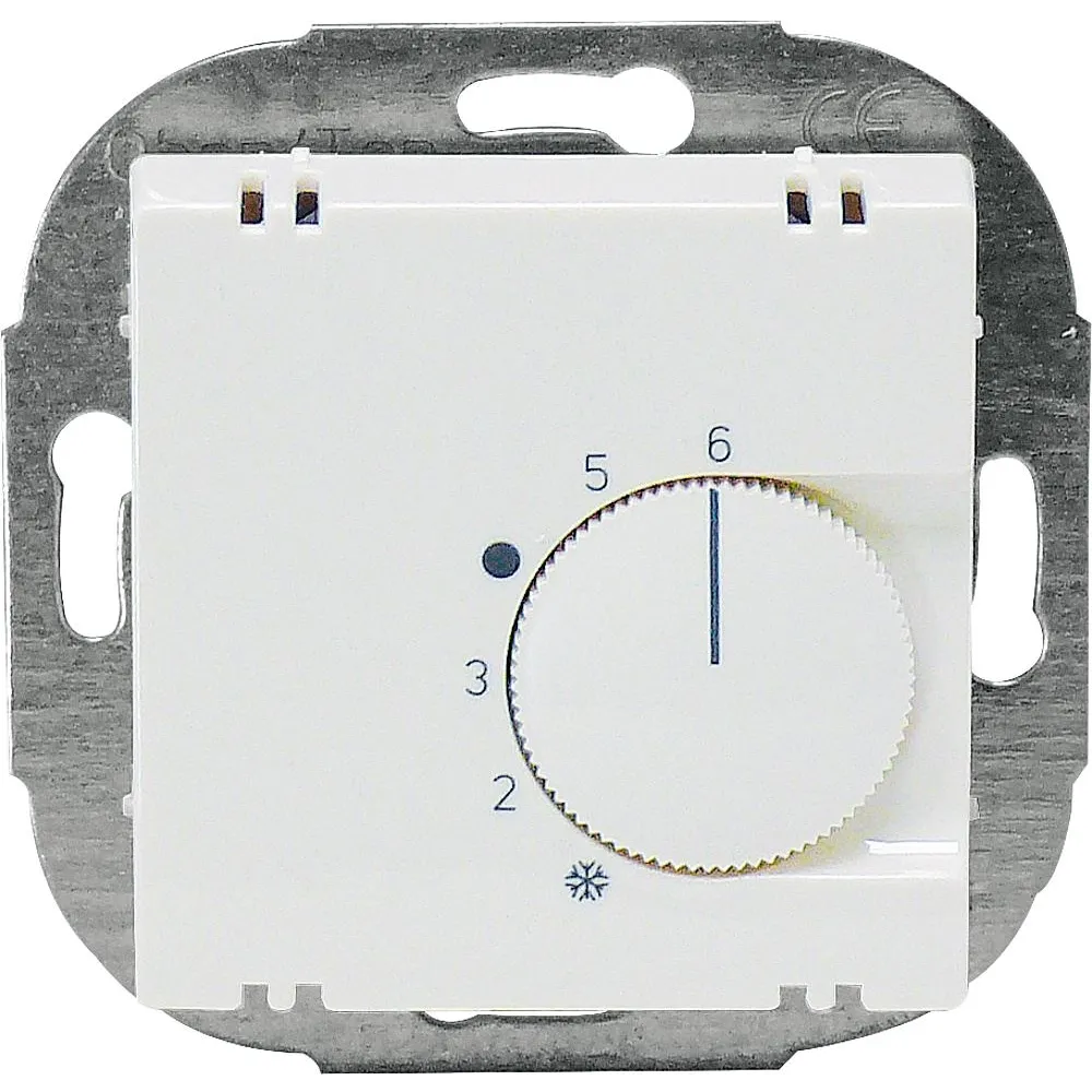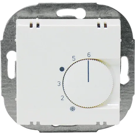bestehend aus10x Raumtemperaturregler, elektromechanisch, mit Bimetall-Fühlerelement, thermischer Rückführung und mechanischer Bereichseinengung, Schaltdifferenz 0,5K, Temperaturbereich +5°C bis +30°C, Einsatz zur Montage in Schalterdose, mit Schraubklemmen, Berührungsschutzabdeckung und Bauschutzkappe, Schaltkontakt 1 Öffner 230V/10A, VDE, Art.Nr. 1154900010x Zentralscheibe, für Raumtemperaturregler, Maße 55x55mm, Typ glänzend, Farbe reinweiß RAL 9010, Art.Nr. 11544500 2x Bedienungsanleitung